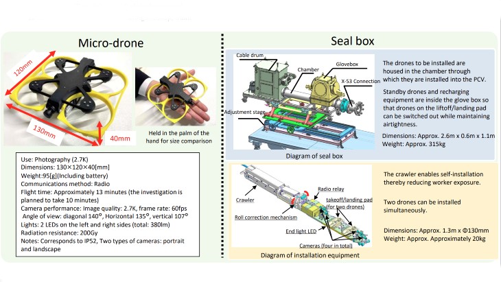 Air tightness has to be maintained at all times - see Tepco diagram below for more details - and each of the two drones flew for about 8 minutes.