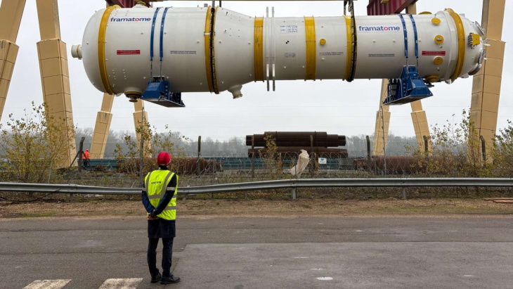 The vessel - measuring 13 metres in length and weighing 500 tonnes - was fabricated by Framatome at its Saint-Marcel plant in Chalon-sur-Saône, eastern France.