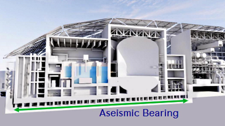 Aseismic bearings are installed beneath the plant's nuclear island to decouple the reactor building from ground motion during an earthquake. By absorbing and dissipating seismic energy, they reduce the forces transmitted to the superstructure, preserving both integrity and functionality.